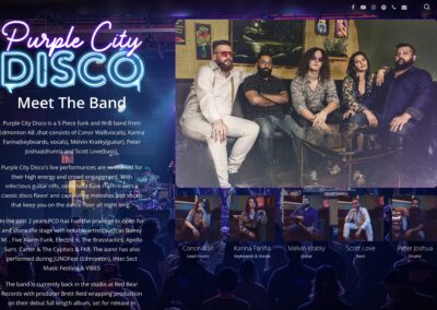 SciMedia Tech had the pleasure of collaborating with Edmonton’s disco-funk sensation, Purple City Disco!, to create a dynamic website that captures the band’s unique style and energy. The project focused on showcasing their latest music, providing fans with up-to-date show listings, and offering a vibrant online hub that reflects the band’s artistic flair. The final website combines visually stunning design with intuitive functionality, creating an engaging experience for fans. Purple City Disco! was thrilled with the results, enjoying a platform that truly represents their signature sound and aesthetic. Together, we brought their digital presence to life with creativity and passion.